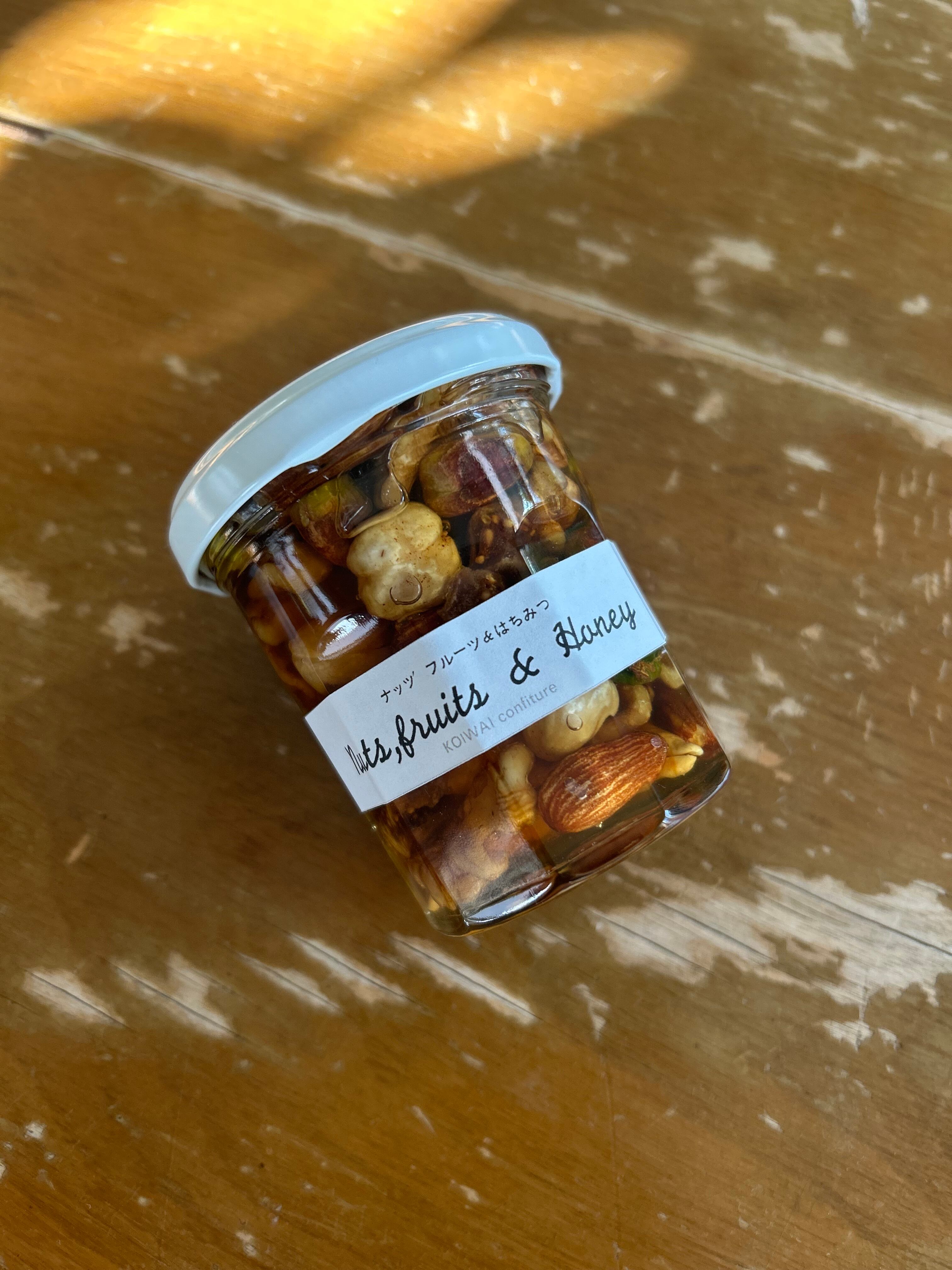 ヘーゼルナッツ、ピスタチオ、くるみ、アーモンド、カシューナッツと、ドライいちじく、大粒クランベリー、夏みかんのピールをハチミツ漬けにした贅沢なNoël2025限定です。