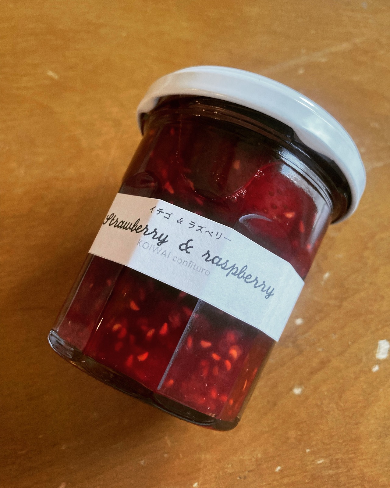 イチゴとラズベリー、スパークリングワインたっぷりのコンフィチュールです。甘みと酸味のバランスがとてもよく、クリームチーズと一緒にパンにたっぷり塗って召し上がっていただくのがおすすめです。